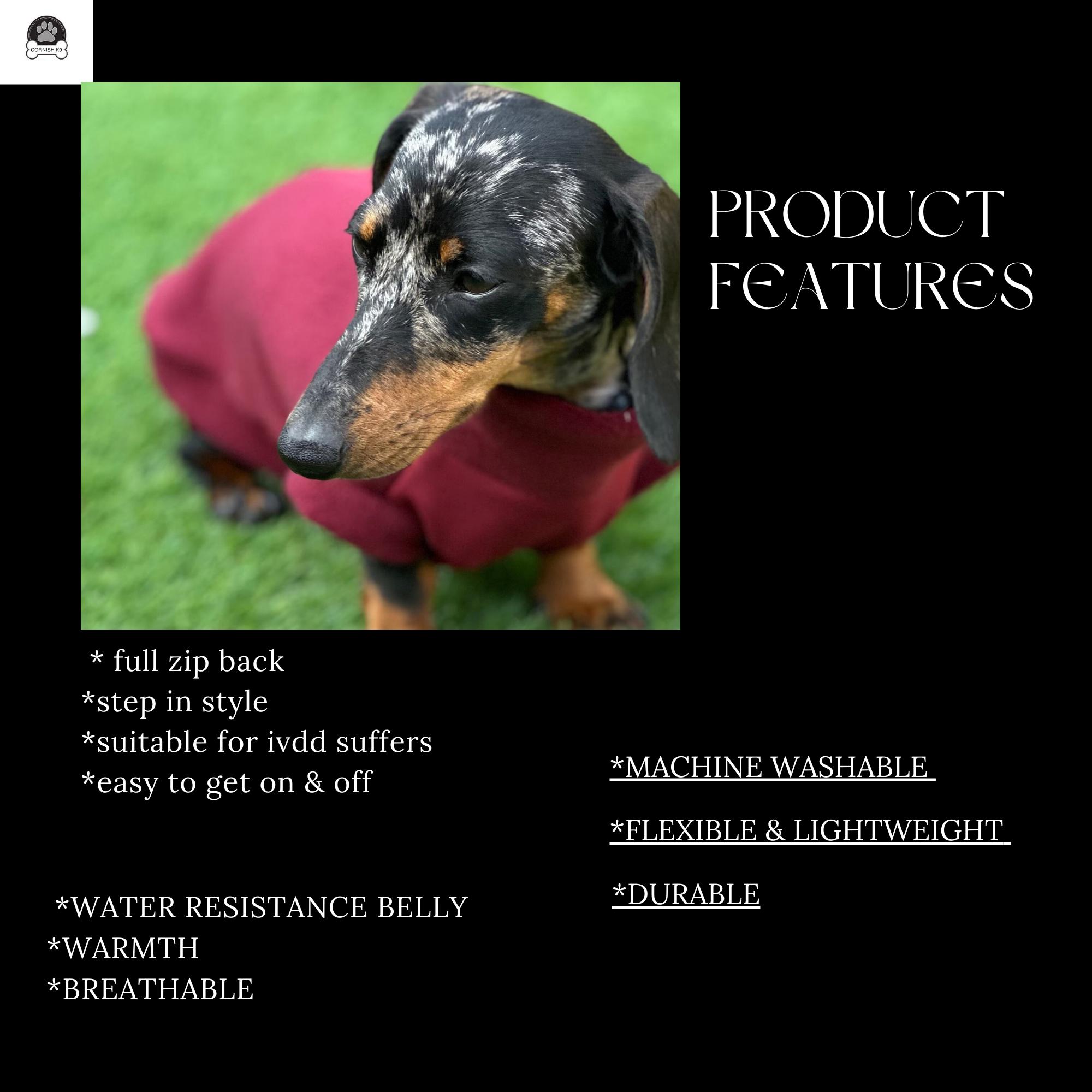 dachshund zipped fleece jumper with waterproof soft shell tummy