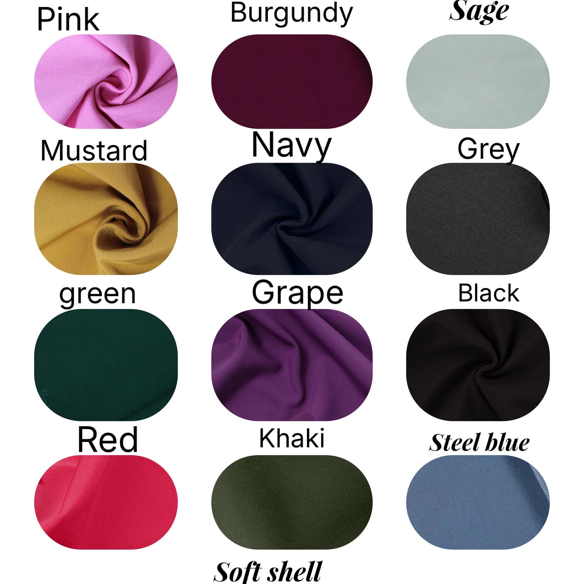 the fleece will match the soft shell tummy unless you’ve asked for a different colour tummy the zip will match the fleece